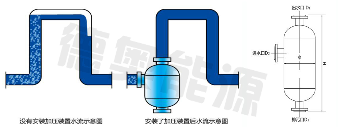 疏水自動加壓裝置,作為凝結水回收系統(tǒng)的輔助設備,主要應用于水平凝結水管路需要升高上管架或者管廊、過馬路等,消除汽阻,提升凝結水升高能力。同時由于汽水兩相流相態(tài)發(fā)生調(diào)整,還能夠極大緩解甚至消除管路水擊。