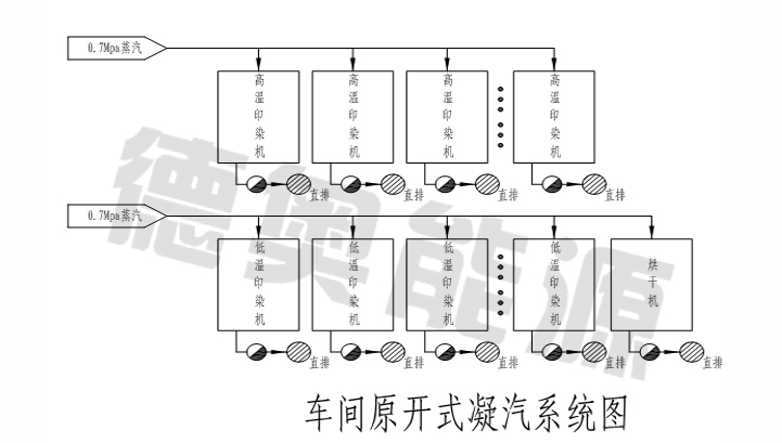 1、熱能和水資源浪費(fèi):由于原系統(tǒng)是直排系統(tǒng),在凝水直排的同時(shí)帶走了大量的熱能,同時(shí)使大量處理過(guò)的純凈冷凝水直接排放。